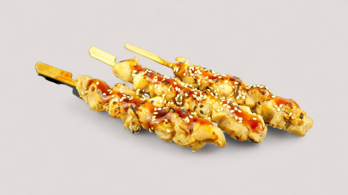3 Stück gegrillte Hähnchenspieße mit Teriyaki-Soße und Sesam