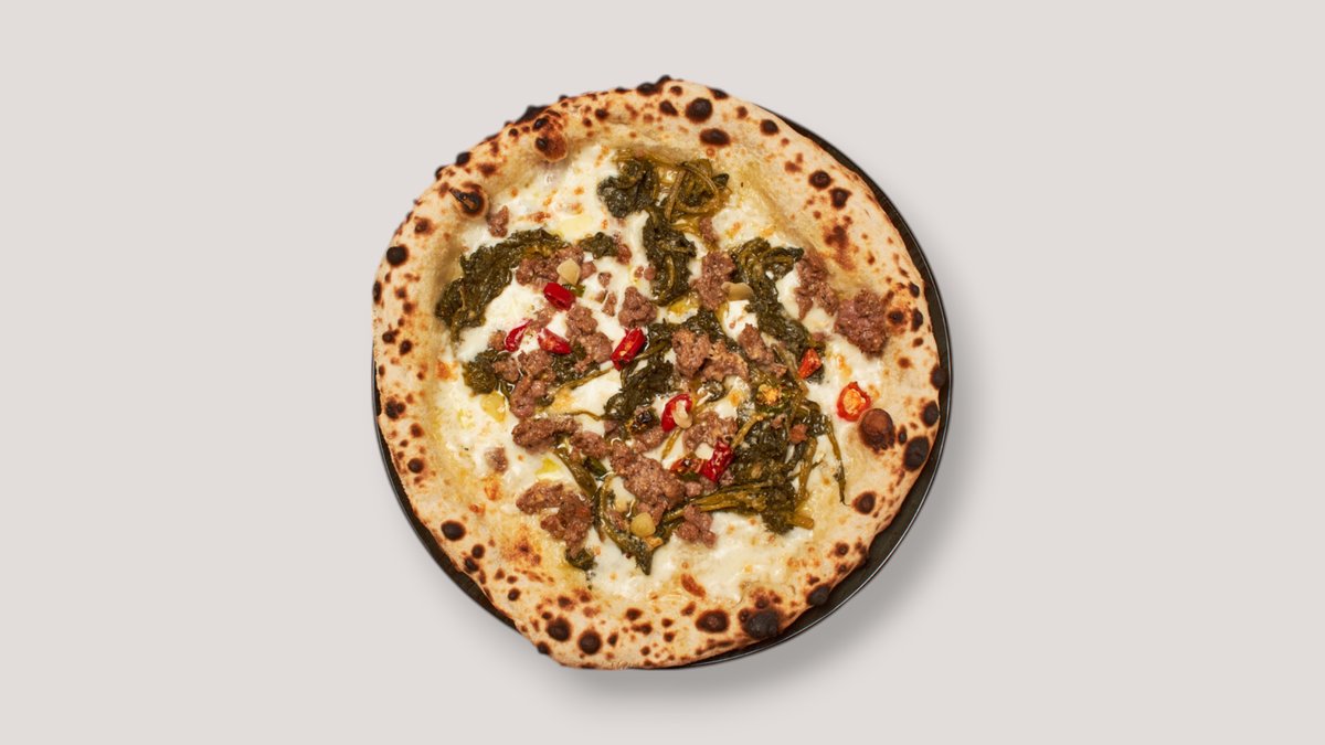 mit Olivenöl extra vergine 100 %, Salsiccia, Friarielli, Peperoncino und Knoblauch