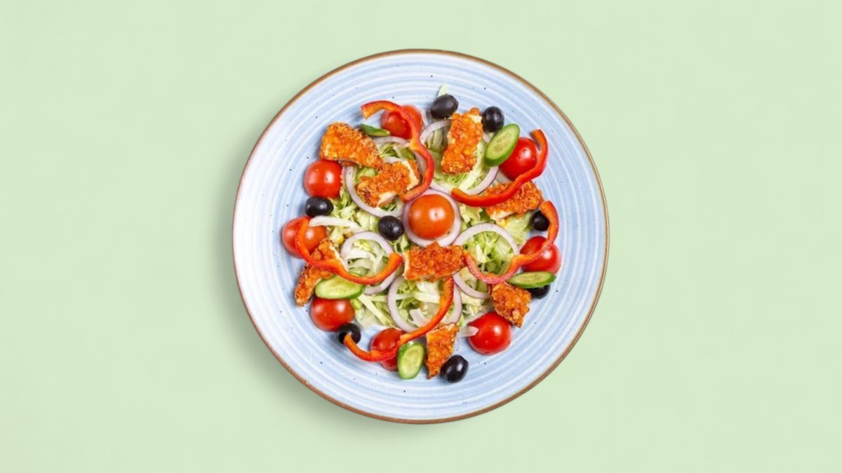 mit Crispy-Streifen, Tomaten, Mais und Paprika
