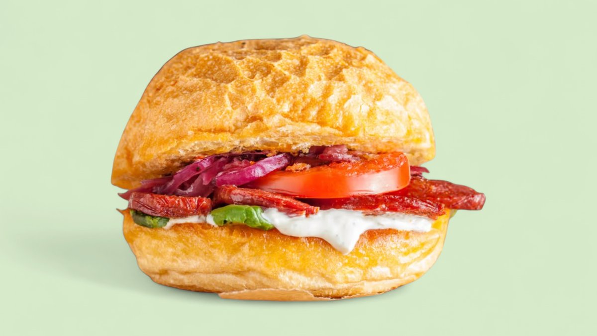 mit Rindfleisch, Käse, Tomaten, roten Zwiebeln und sauren Gurken