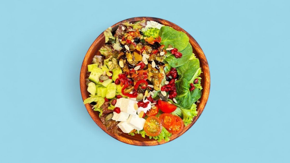 alle Salate werden mit Gurken, Zwiebeln, Tomaten und einem Dressing deiner Wahl zubereitet („Pollo Salat” wird ohne Tomaten zubereitet, „Mediterrane Salat” wird ohne Gurken, Zwiebeln und Tomaten zubereitet)