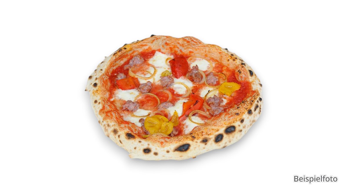 alle Pizzen werden in der Größe von Ø 30 cm zubereitet und mit Käse und Tomatensoße belegt