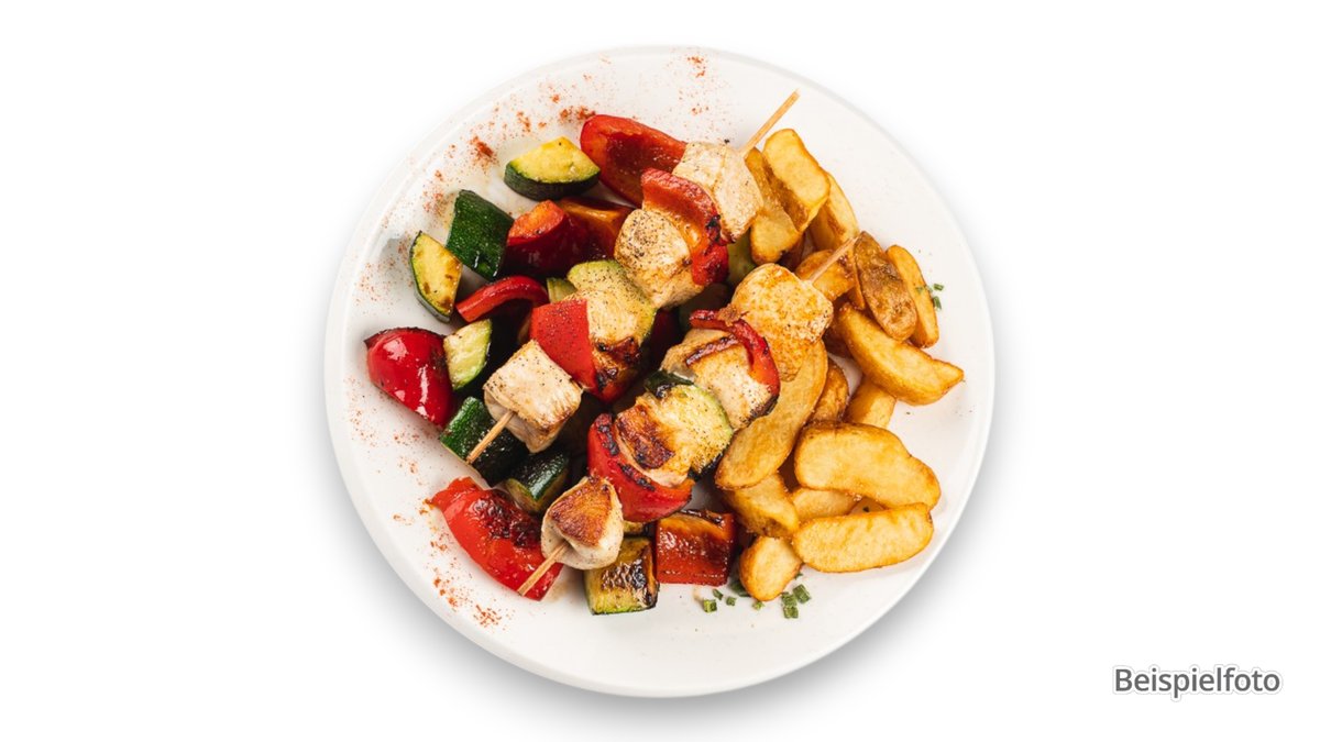22. Pasta Kebab mit frischen Tomaten, Champignons und Knoblauch