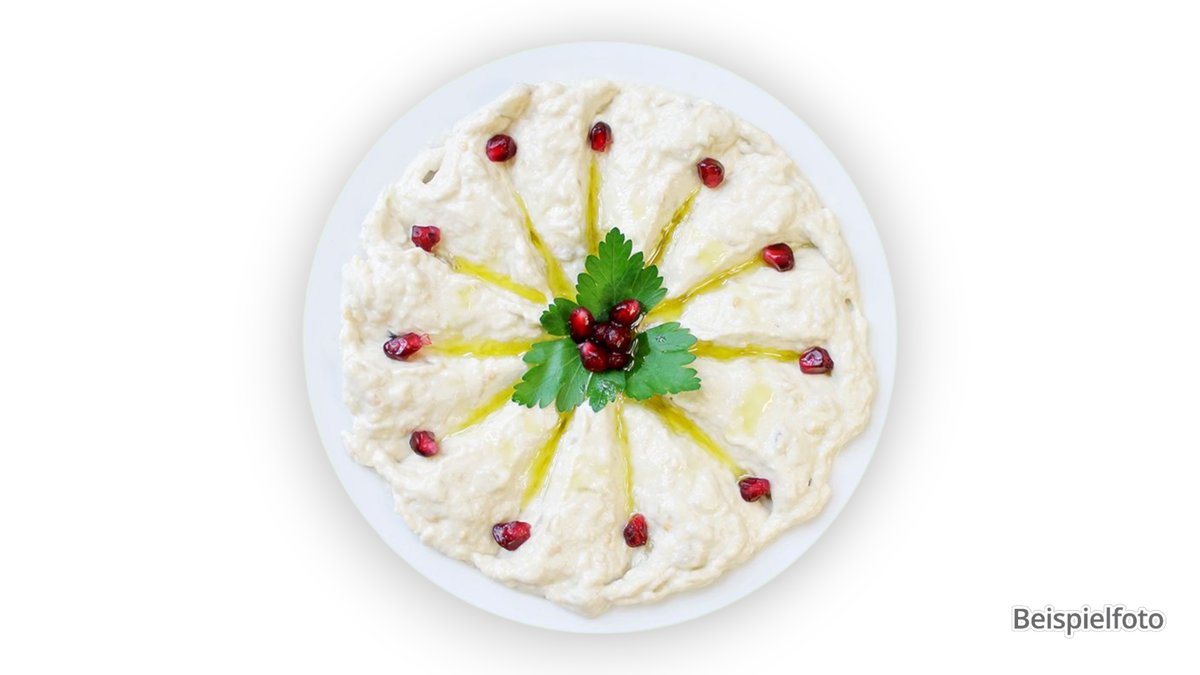Auberginenpüree mit Sesamsoße, Zitronensaft, Olivenöl und Knoblauchcreme