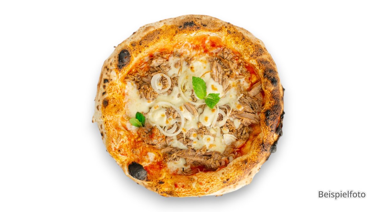 mit Tomatensoße, Käse, Thunfisch und Zwiebeln