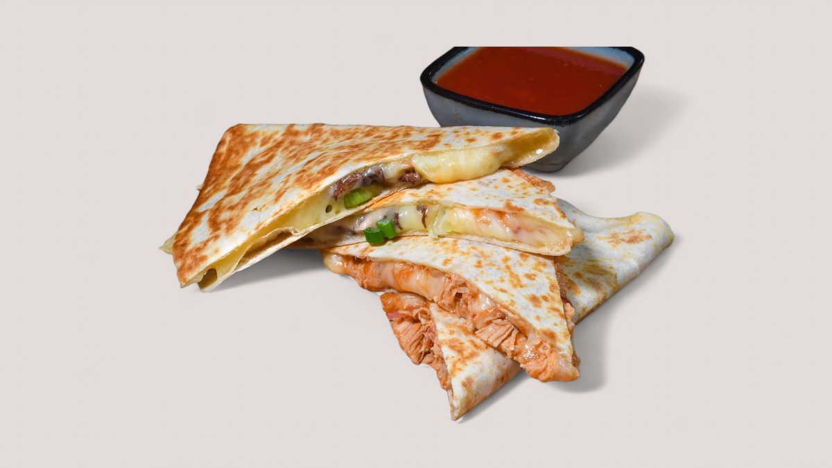 Weizentortilla mit geschmolzenem Gouda und Salsa Picante