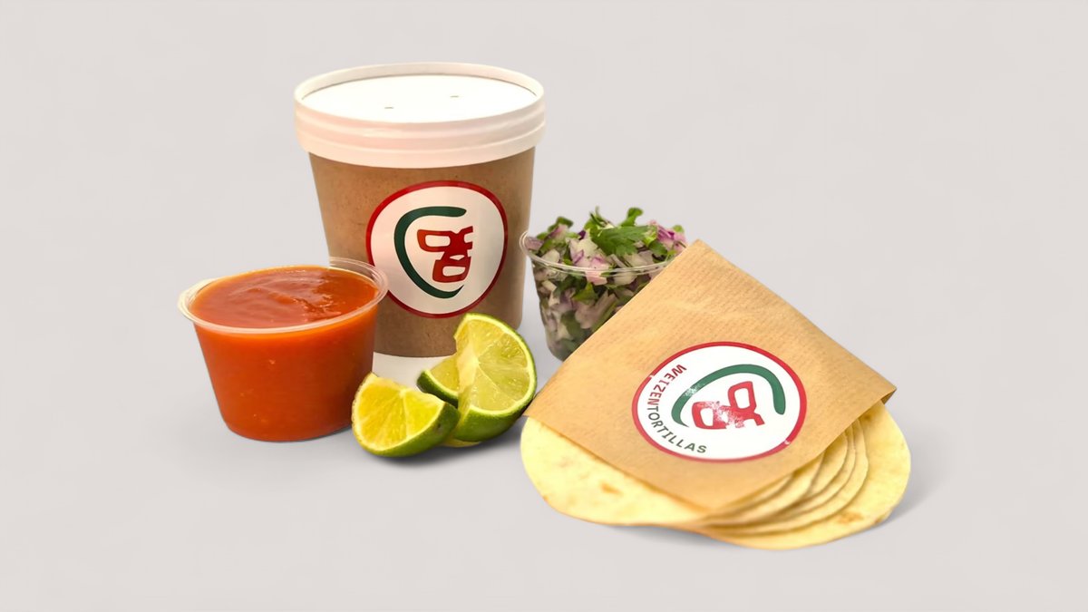 "Do It Yourself" Taco Box. Jede Füllung kommt mit 5 Weizentortillas, scharfer Salsa, gehackten Zwiebeln mit Koriander und Limetten. Ideal für den Taco Genuss zuhause