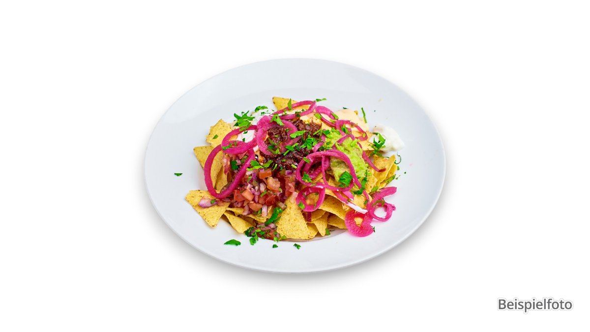 Tortillachips mit Chili con Carne vom Rind, Chili-Jalapeños, Paprika und überbacken mit Käse