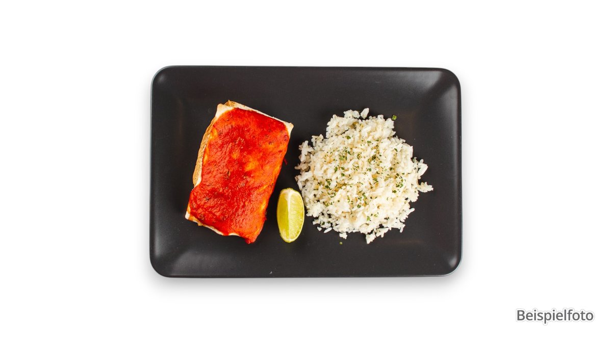 mittelscharf auf Lavastein gegrillte Putenmedaillons mit delikater Red Pepper Jam, dazu Reis