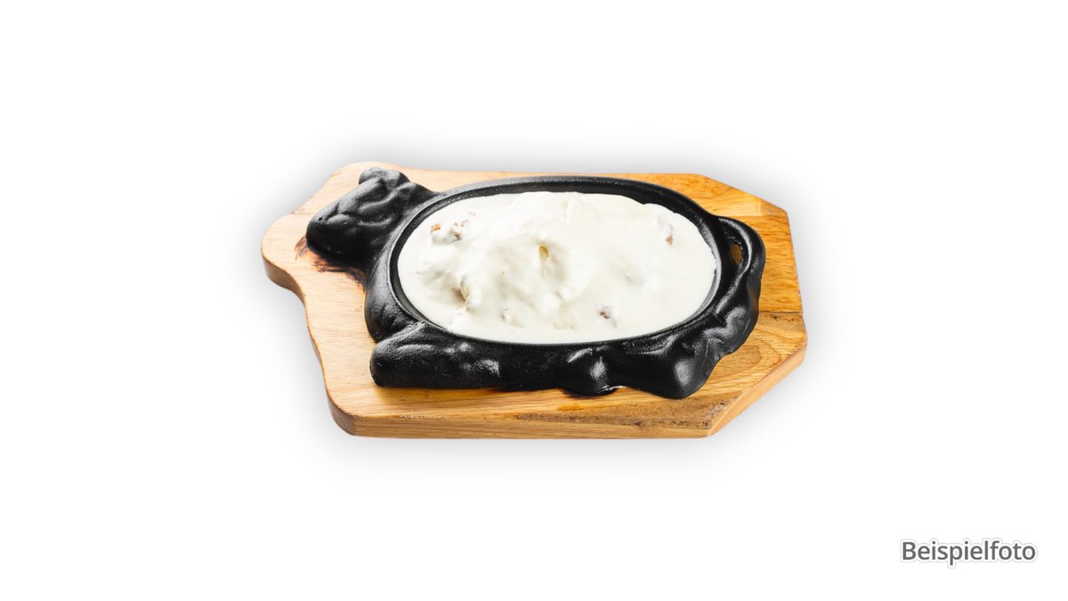 saftiges zartes Rückensteak vom Schwein, gegrillt, überzogen mit Sauce hollandaise und frischen Champignons, dazu Folienkartoffeln mit Sauerrahm