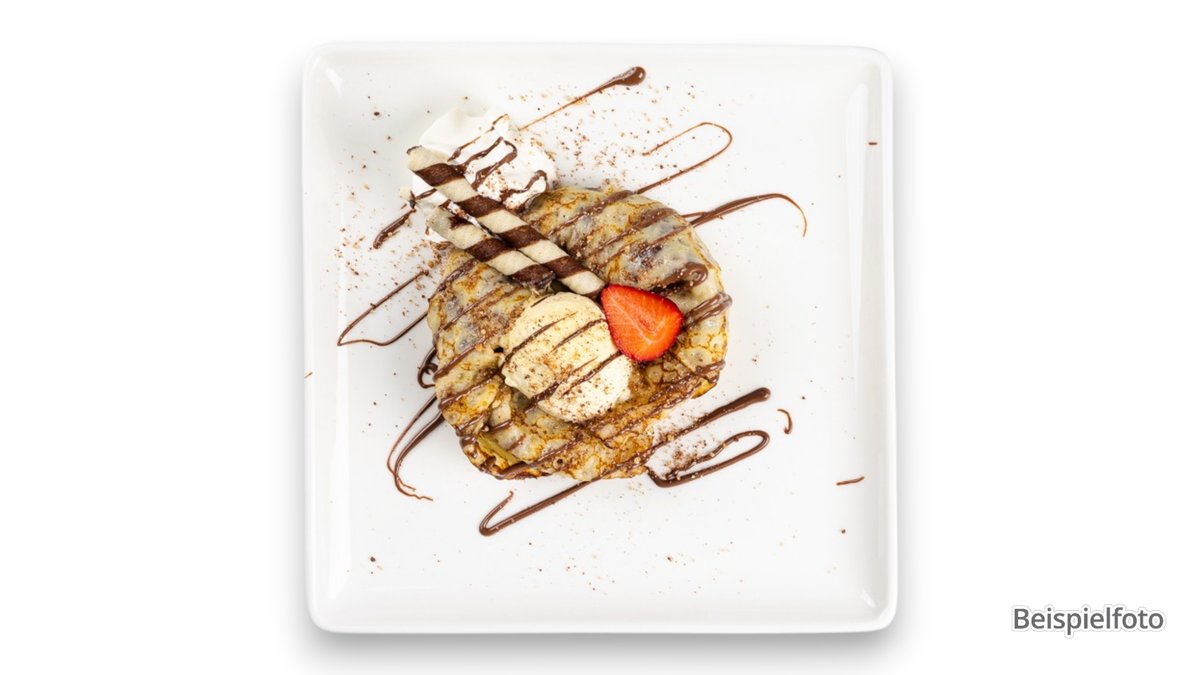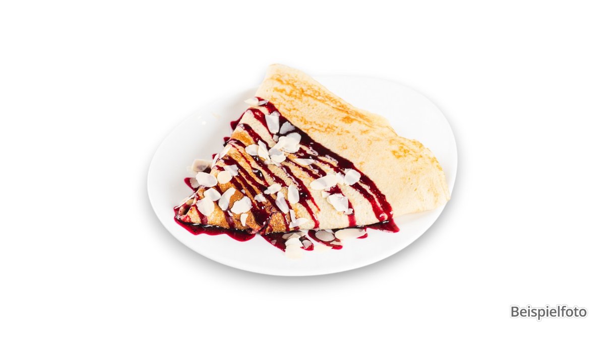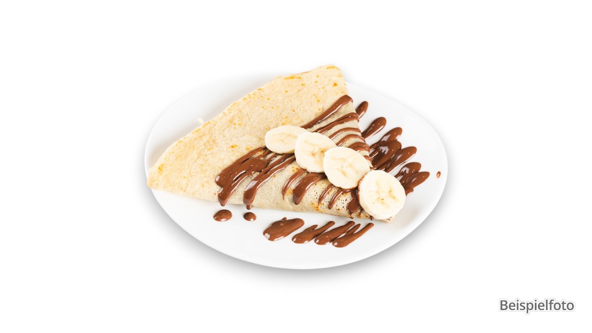 knusprige Weizentortilla mit Nougat-Walnuss-Füllung, serviert mit Sahne