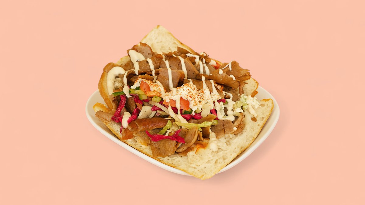 alle Gerichte werden mit Eisbergsalat, Gurken, Tomaten, Zwiebeln, Rotkohl und einer Soße deiner Wahl zubereitet