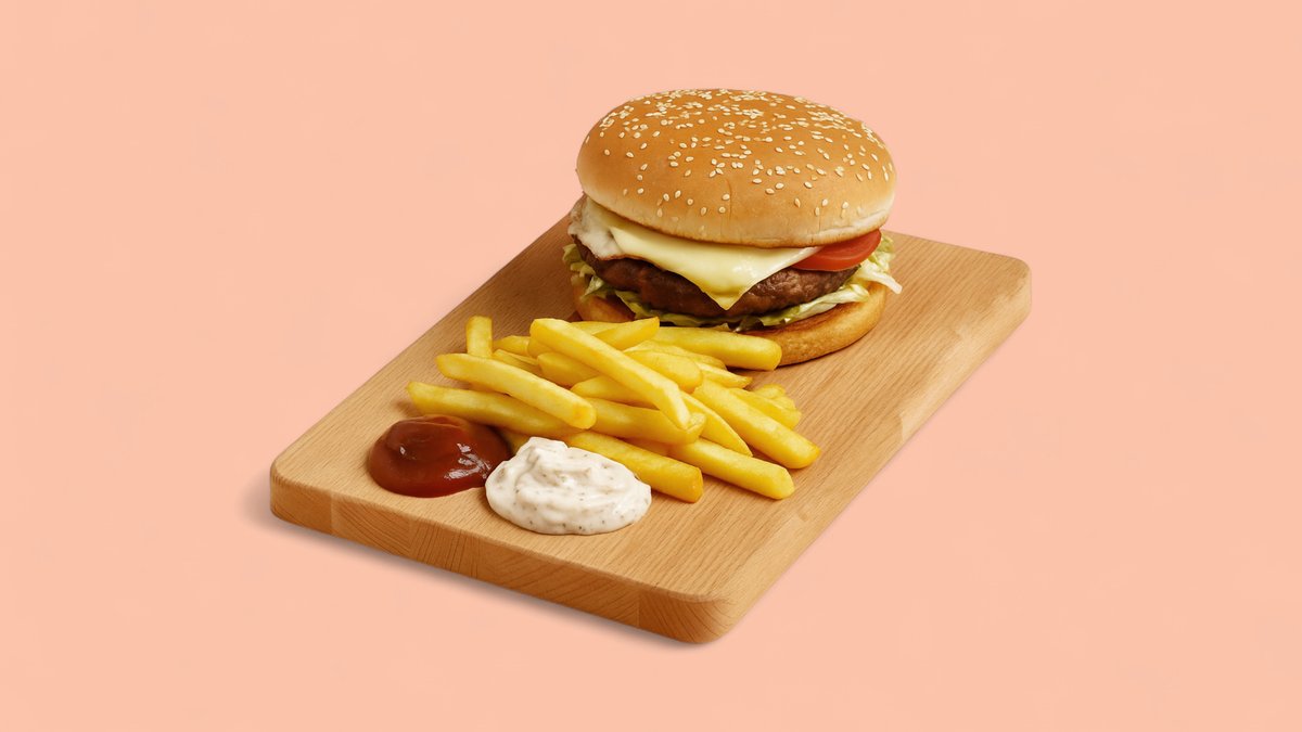 alle Menüs werden mit Pommes frites und einem Getränk deiner Wahl serviert