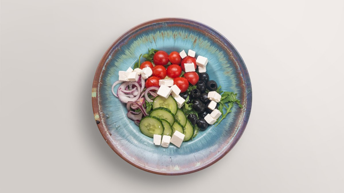 alle Salate werden mit Eisbergsalat, Kirschtomaten, Gurken, Oliven und Zwiebeln zubereitet („Salat Caprese” wird ohne Eisbergsalat, Kirschtomaten, Gurken und Zwiebeln zubereitet)