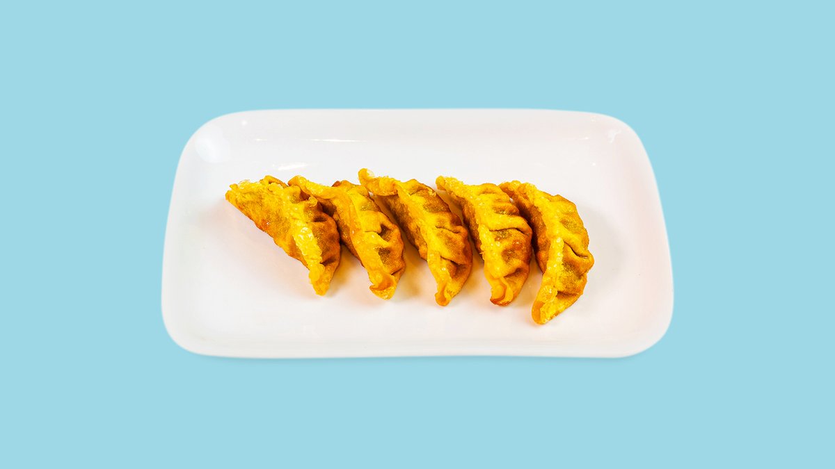 knusprige Teigtaschen mit Hähnchen, Limetten-Chilisoße und Kimchi-Krautsalat