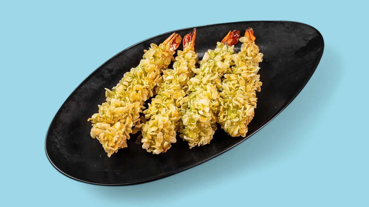 Black Tiger Garnelen in grünen Reisflocken mit Wasabi-Mayonnaise und in einer Größe deiner Wahl