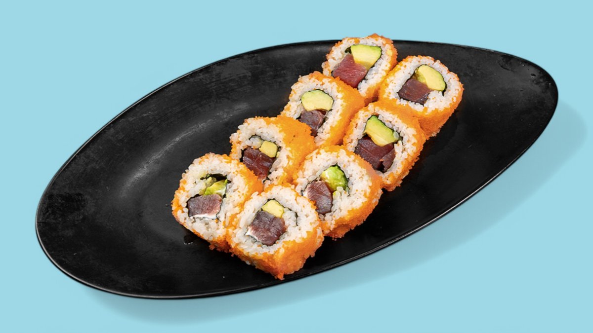 mit Thunfisch, Avocado, japanischer Creme und Tobiko