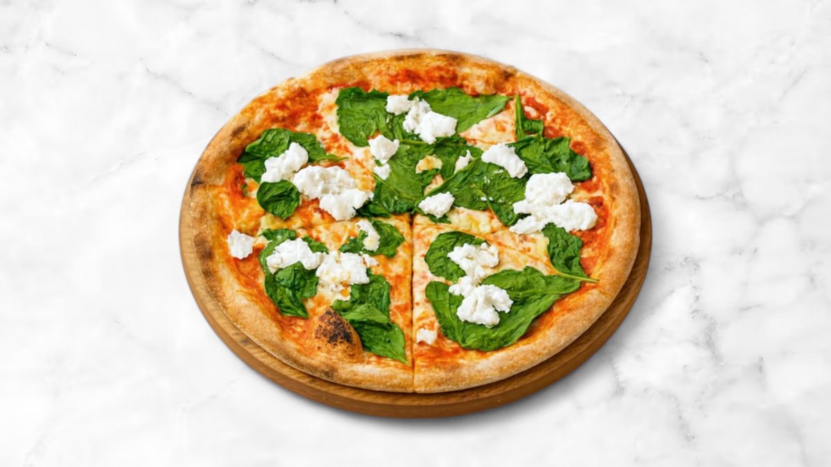 alle Pizzen werden in der Größe nach Wahl zubereitet und mit Tomatensoße und Mozzarella serviert