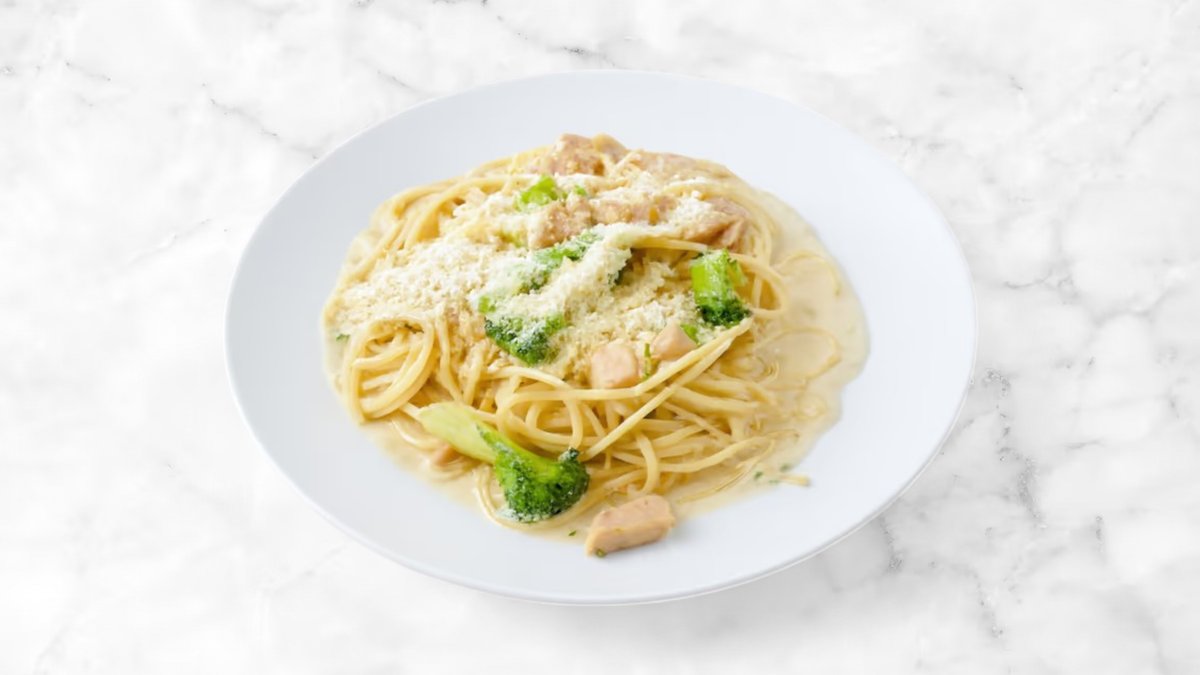 pikant Sahnesoße, Knoblauch, Brokkoli und Hähnchenbrust