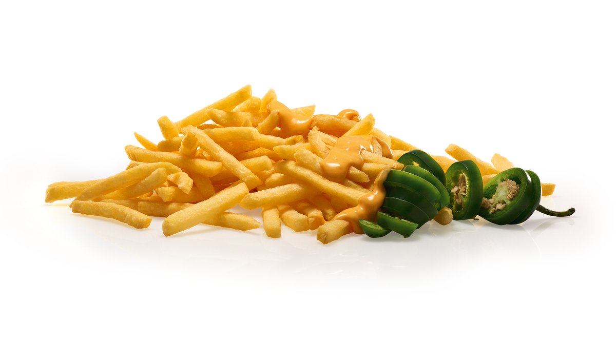 Für alle, die es scharf mögen: Genieße unsere knusprigen Pommes mit einem schmelzenden Cheese Topping und feurigen Jalapeños. Als Beilage für deinen Lieblingsburger oder als Snack zwischendurch!