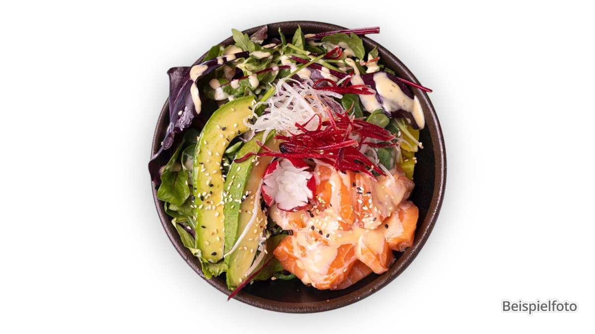 mit Lachswürfeln, Avocado, Salat-Mix, Ponzusoße und einer Zutat nach Wahl