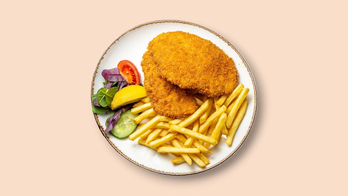 Hähnchenschnitzel mit Pommes frites