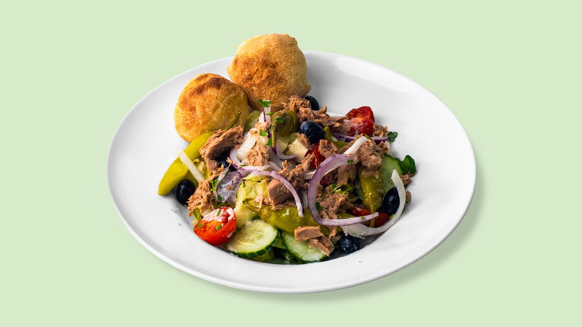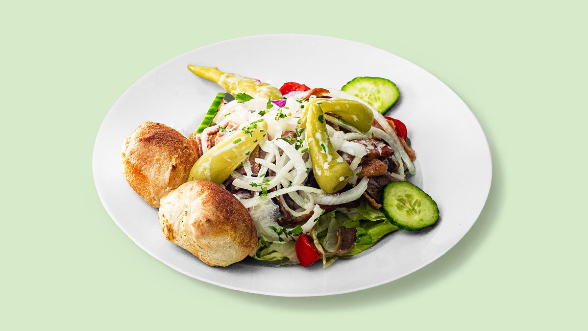 alle Salate werden mit grünem Salat zubereitet und mit einem Dressing deiner Wahl und zwei Pizzabrötchen serviert („Beilagensalat” wird ohne zwei Pizzabrötchen serviert)