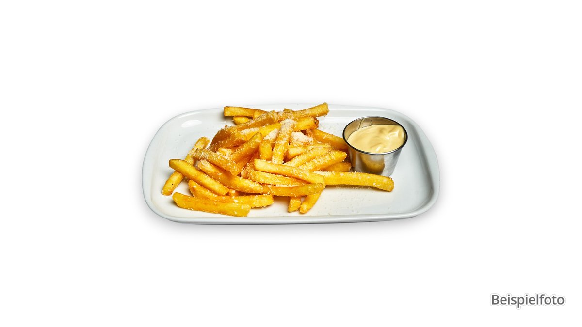 mit 200 g Dönerfleisch, knuspriger Salat und Pommes frites