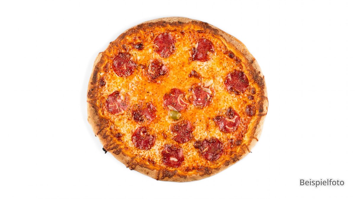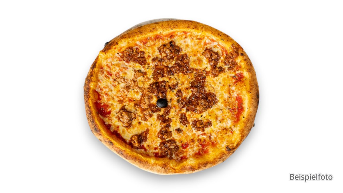 mit Tomatensoße, Käse, Dönerfleisch vom Schwein, Sucuk vom Schwein, Weichkäse, Peperoni, Kirschtomaten und Knoblauch