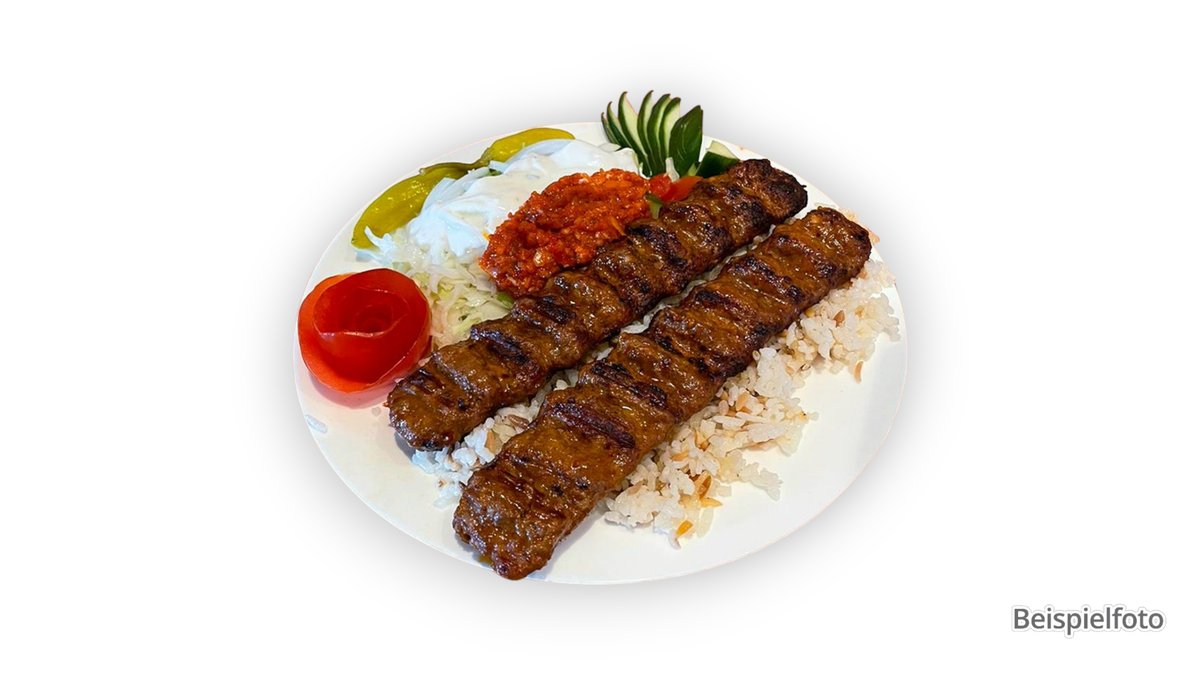 Rinderhackfleisch Spieß mit einer Beilage deiner Wahl