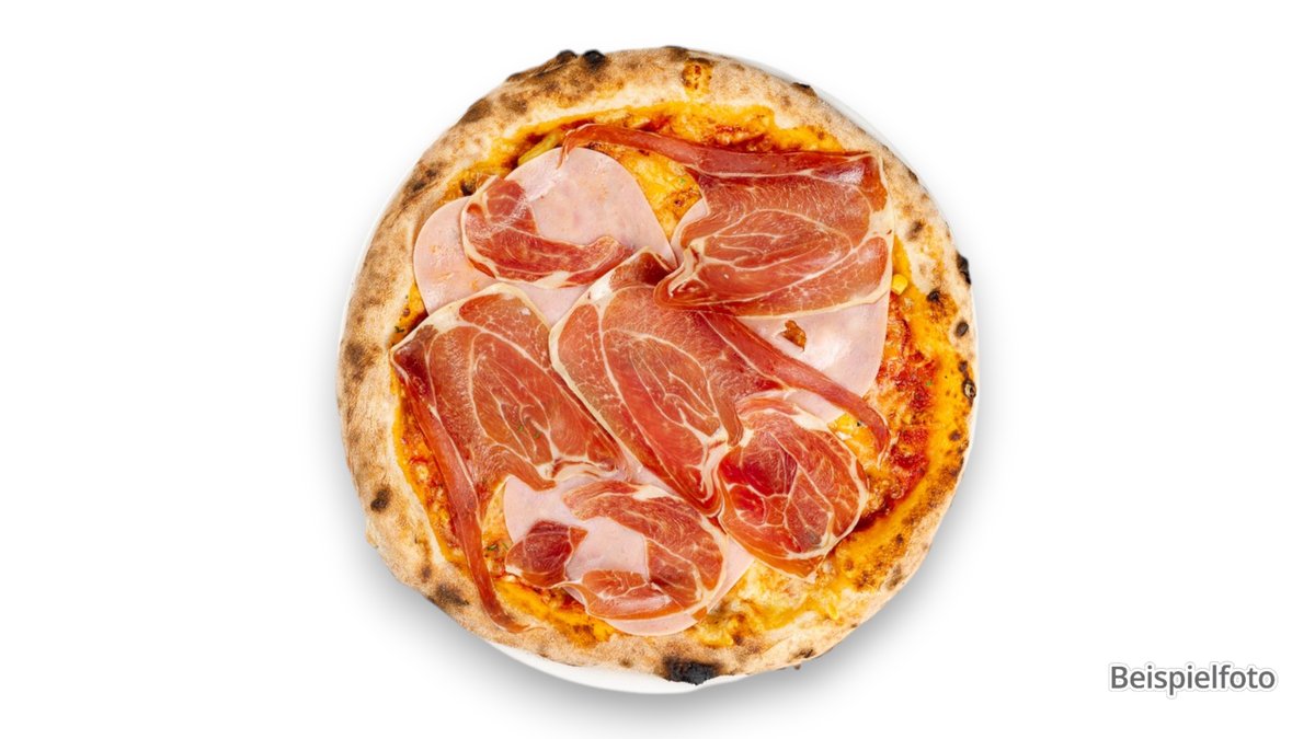 alle Pizzen werden mit Tomatensoße und Gouda zubereitet und in einer Größe deiner Wahl serviert