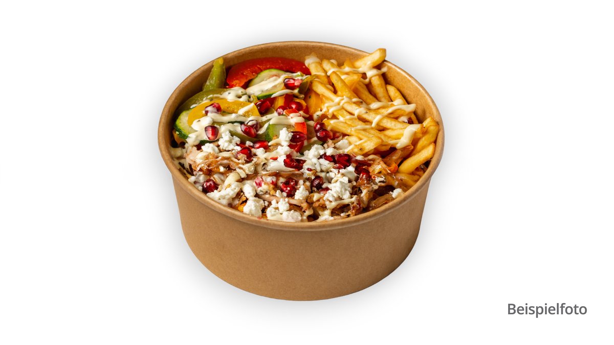 mit Dönerfleisch, Pommes frites und einer Soße deiner Wahl