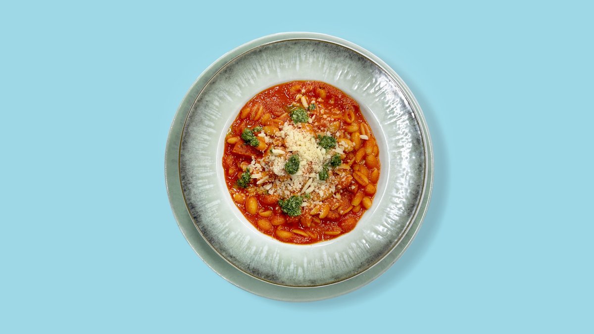 sardische Gnocchetti mit fruchtiger Tomatensoße Salsiccia, Basilikumpesto und Parmesan