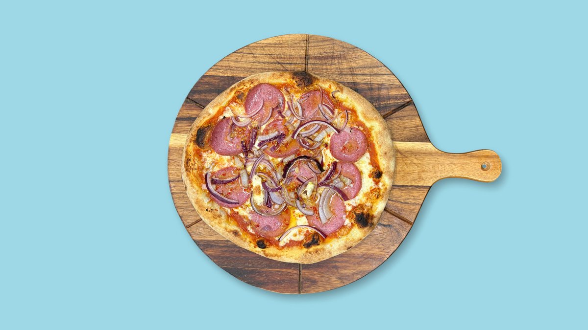mit Salami vom Schwein, Zwiebeln, Knoblauch und Chili, ohne Mozzarella
