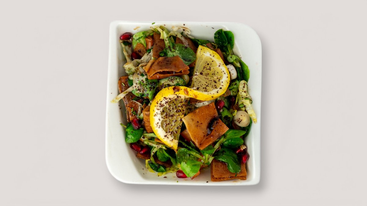 gemischter Salat mit Minze, geröstetem Brot und Zitronensaft