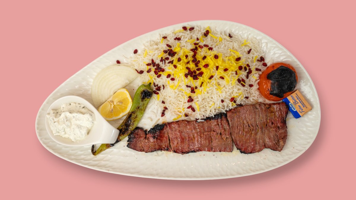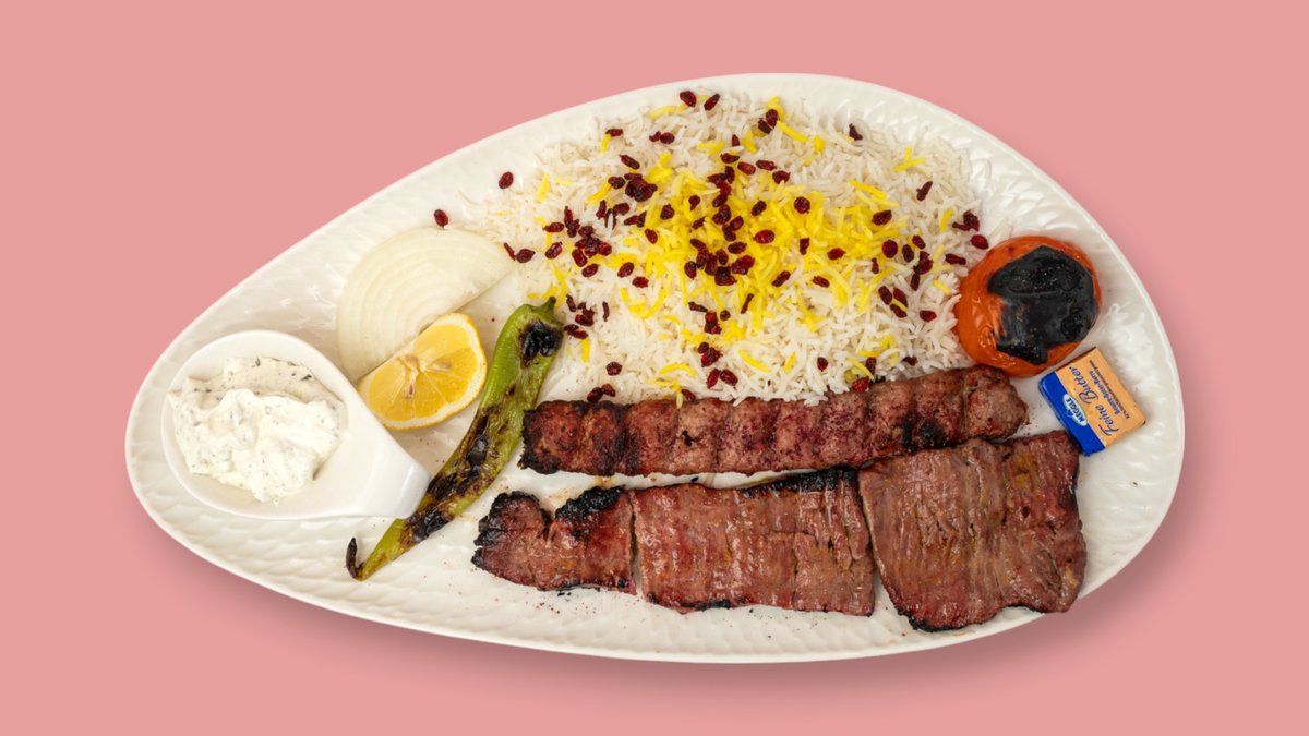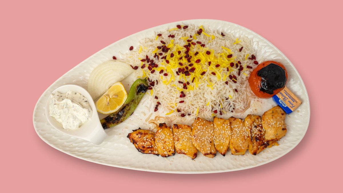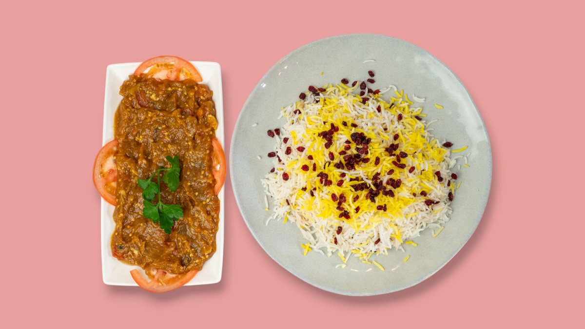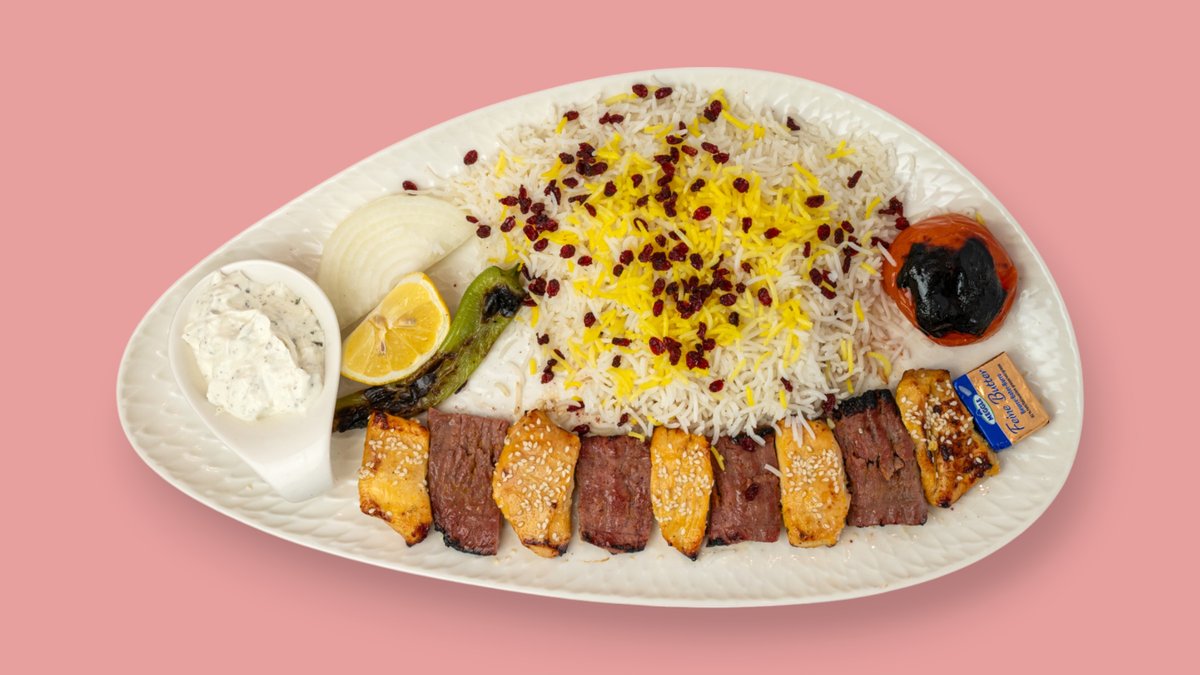 alle Gerichte werden mit Kartoffeln, Zwiebeln, TomatensoĂźe und persischen GewĂĽrzen zubereitet
