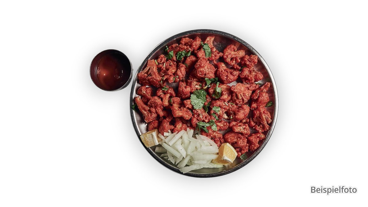 scharf ausgewähltes Protein (Hähnchen) in Kichererbsenmehl gewendet und frittiert