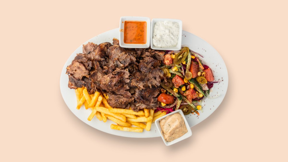 alle Gerichte werden mit Salat, Tomaten, Gurken und Zwiebeln zubereitet