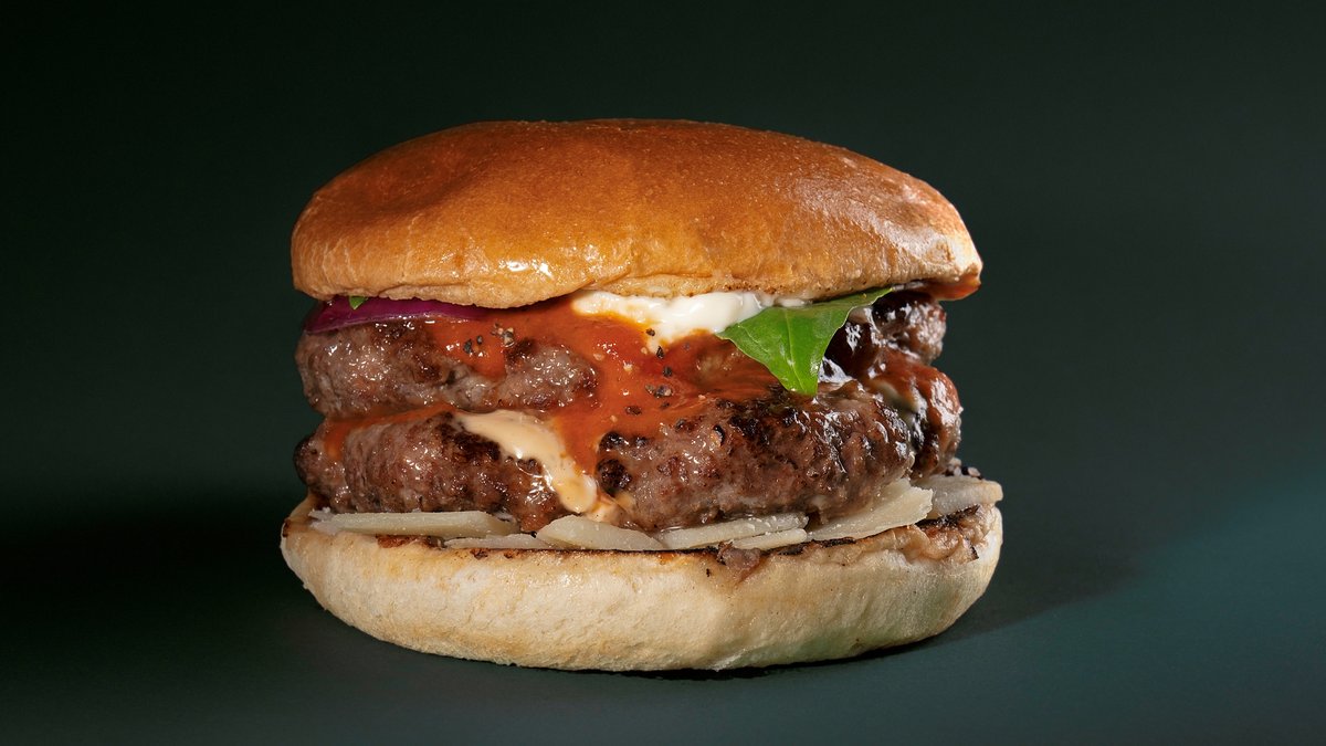 "Spiegelei macht es einfach herzhaft und leckerer." 2 Grill-Patties - Spiegelei - Salat - Tomate - Zwiebel - Essiggurke - Hobs Sauce - Ketchup - Mayonnaise