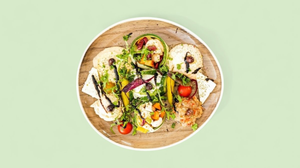für zwei Personen Saganaki, Kolokithokeftedes, Hackfleischbällchen, Dolma, Auberginen- und Zucchinischeiben