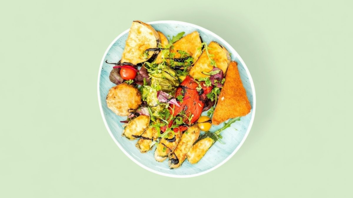 gegrillt mit Kartoffelecken, Schafskäsecreme und gemischtem Salat