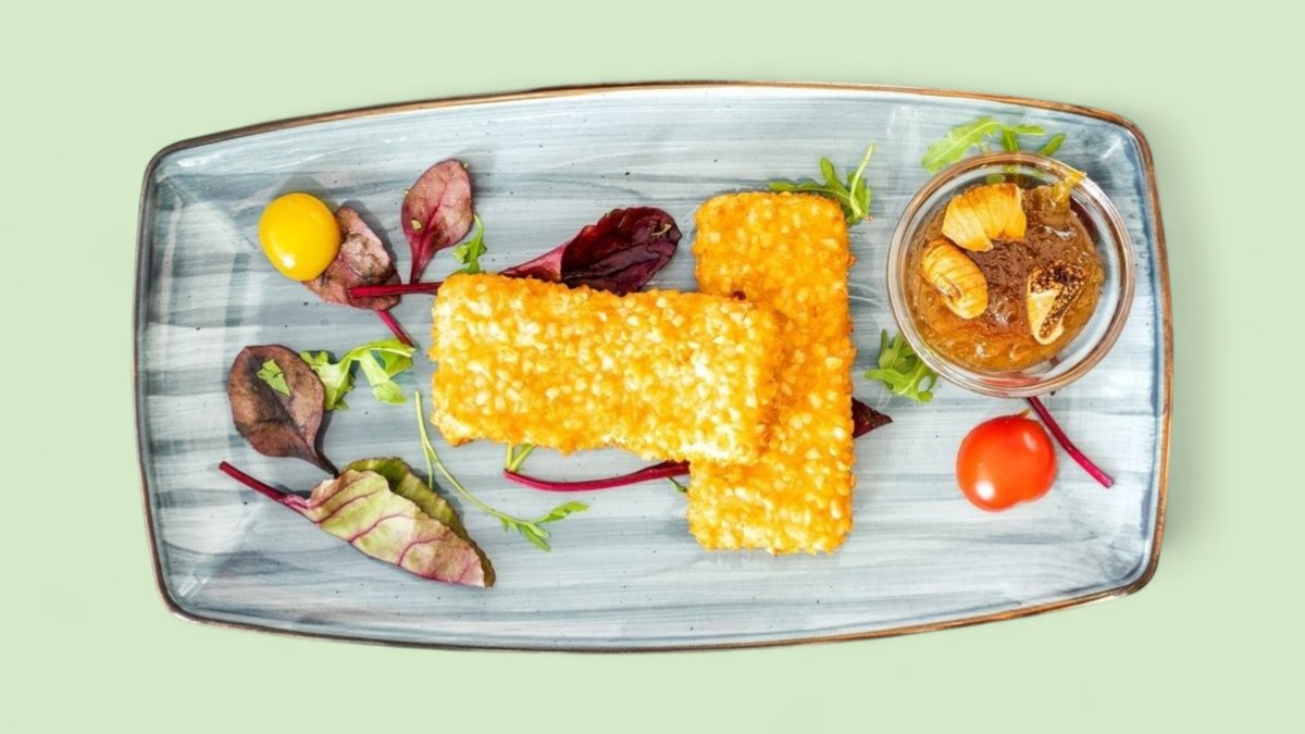 gebackener Schafskäse in Filoteig, mit Honig und Sesam