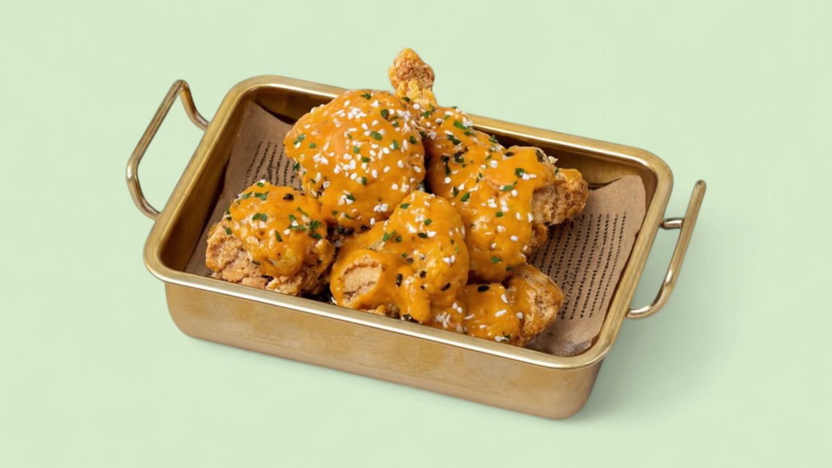 mit Sweet Spicy Chicken, Mustard Honig Korean Chicken und Käse Korean Chicken