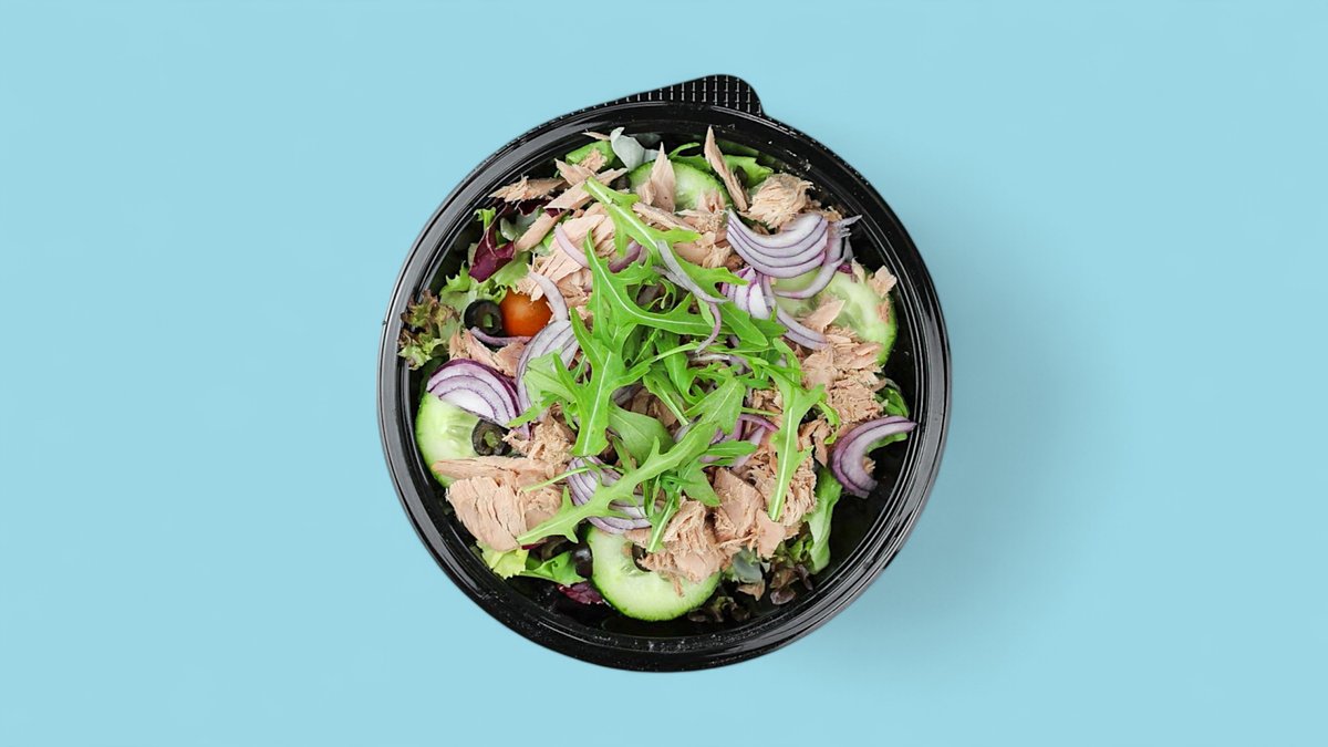 Salat, Gurken, Kirschtomaten, Thunfisch, Schwarze Oliven, Zwiebeln, Rucola (C,D,G)