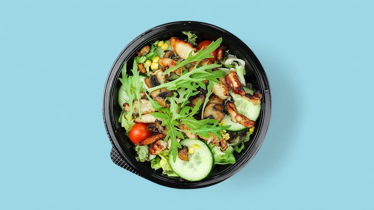 Salat, Gurken, Kirschtomaten, Mais, Hänchenstreifen, Pilze, Rucola (F,C,G)