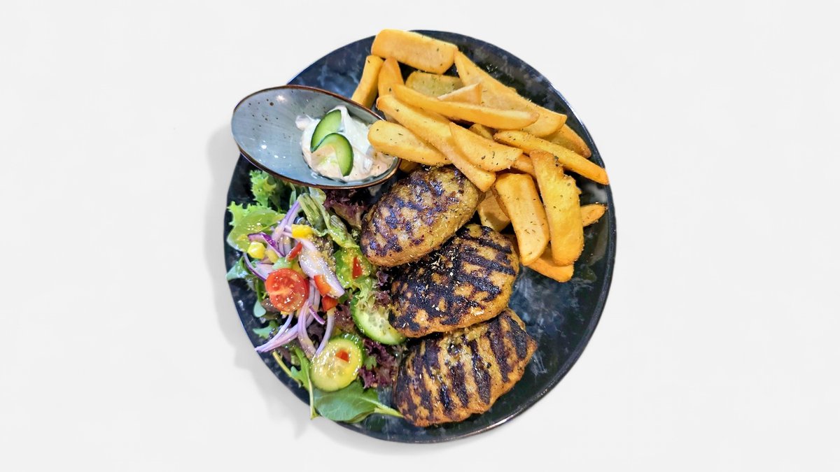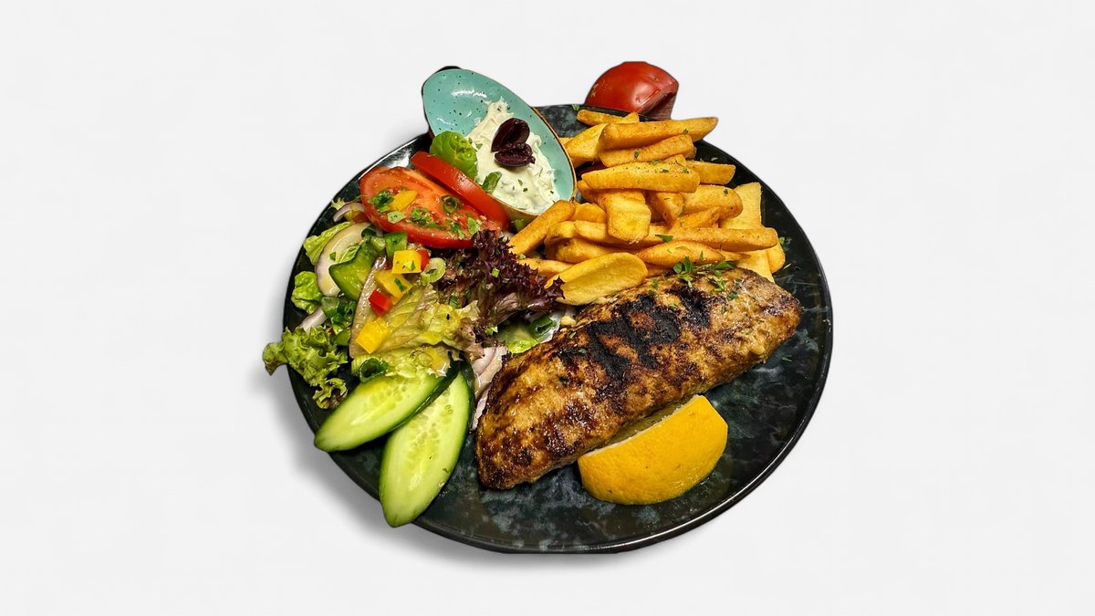 alle Gerichte werden in einer Größe deiner Wahl zubereitet mit Pommes frites, Tsatsiki und Salat serviert („90. Paidakia” und „91. Lammlachs” werden ohne Pommes frites, Tsatsiki und Salat serviert)