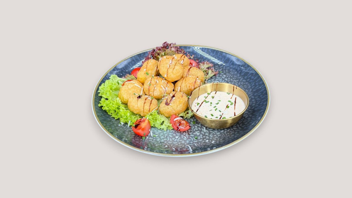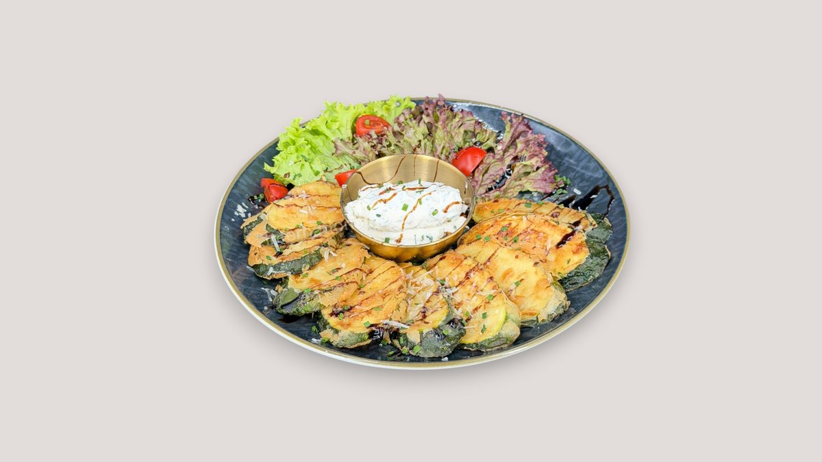 frittierte Zucchini Chips mit Parmesan und Joghurt Dip
