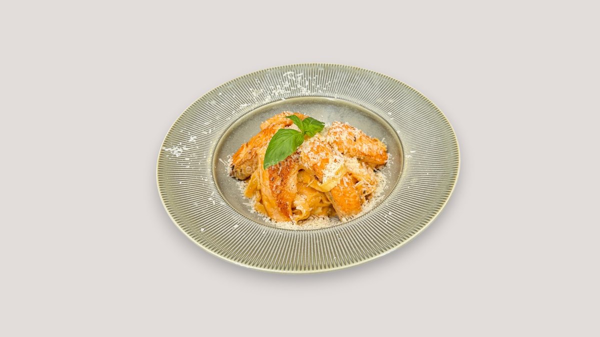 Tagliatelle mit Lachs auf Tomaten-Sahnesoße