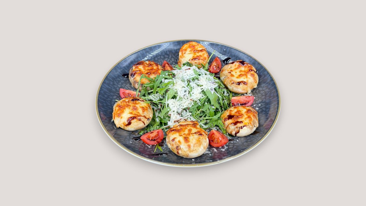Champignons gefüllt mit Frischkäse, Kräuter de Provence und mit Mozzarella überbacken