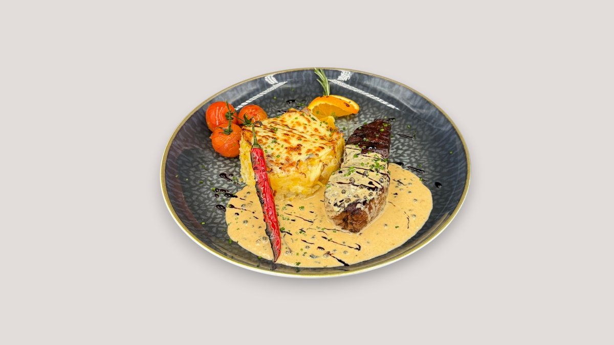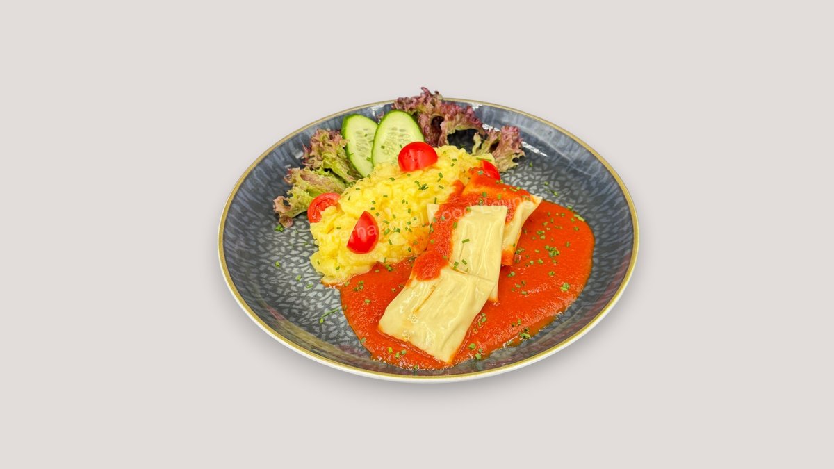 mit einem Gericht und einer Soße deiner Wahl